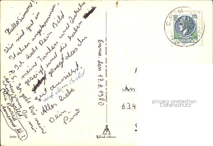 old postcard Enna Turm Rathaus Panorama Stadtblick Brunnen postalisch gelaufen Erhaltung siehe scans