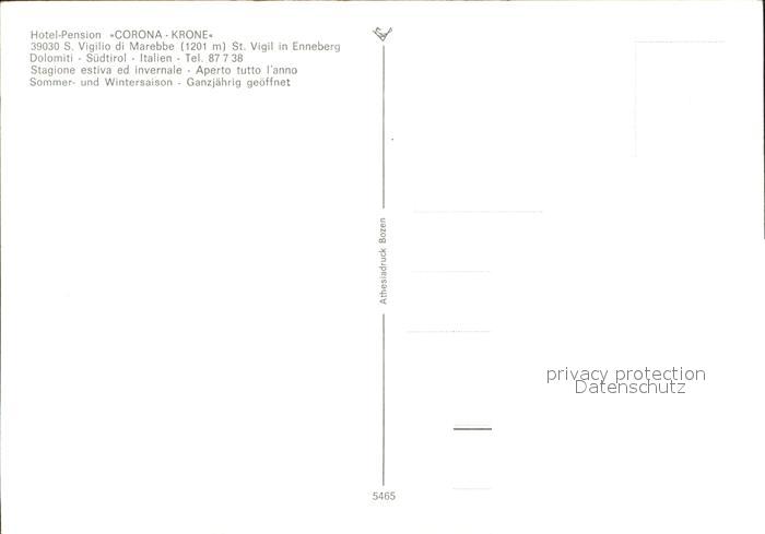 Enneberg Hotel Pension Corona Krone postalisch nicht gelaufen Erhaltung siehe scans