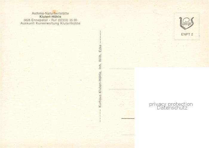 73649189 Ennepetal Asthma Naturheilstaette Klutert Hoehle postalisch nicht gelaufen Erhaltung siehe scans [FriedD77] KatCode: 11110005954008