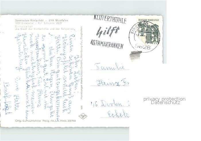 72181376 alte Postkarte Ennepetal Fliegeraufnahme Sanatorium Koenigsfeld postalisch gelaufen Erhaltung siehe scans KatCode: 11110005954008