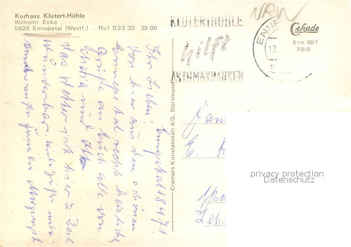73646111 alte Postkarte Ennepetal Kurhaus Klutert Hoehle postalisch gelaufen Erhaltung siehe scans [WerneD78] KatCode: 11110005954008