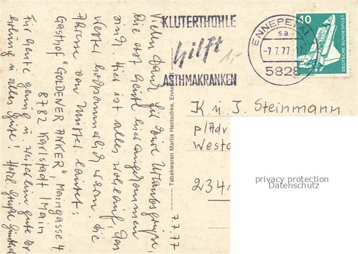 74106428 alte Postkarte Ennepetal NRW Stadtansichten Wohnsiedlung postalisch gelaufen Erhaltung siehe scans [FriedD77] KatCode: 11110005954008