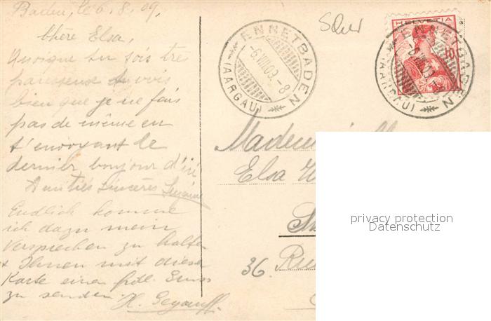 13018189 alte Postkarte Ennetbaden Familienfoto Gruppenbild Spaziergang am Fluss postalisch gelaufen Erhaltung siehe scans [FriedD77] KatCode: 11470010010048
