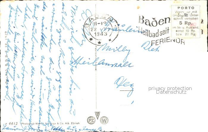 11853463 alte Postkarte Ennetbaden Limmatpartie postalisch gelaufen Erhaltung siehe scans KatCode: 11470010010048