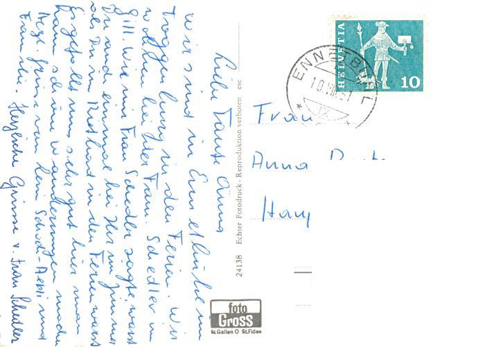 13891380 alte Postkarte Ennetbuehl SG Panorama Blick gegen Saentis Appenzeller Alpen postalisch gelaufen Erhaltung siehe scans [FriedD77] KatCode: 11470190585798