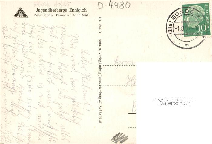 73704264 alte Postkarte Ennigloh Jugendherberge Badeanstalt postalisch gelaufen Erhaltung siehe scans [LiesaD40] KatCode: 11110005758004