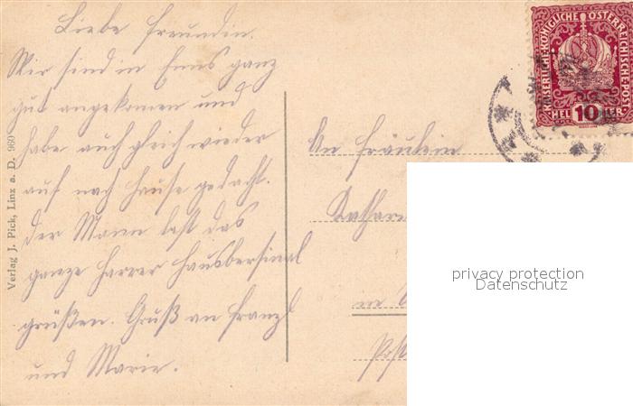 43109633 alte Postkarte Enns Uferpartie am Fluss Ortsansicht mit Kirche postalisch gelaufen Erhaltung siehe scans [FriedD77] KatCode: 11390312041005