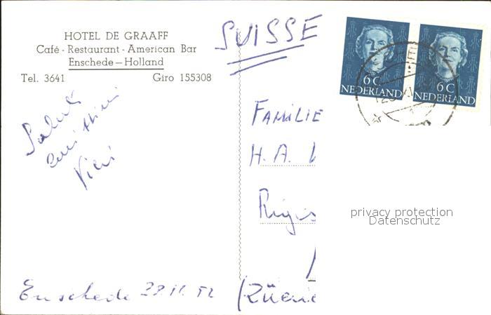 alte Postkarte Enschede Hotel de Graaff postalisch gelaufen Erhaltung siehe scans