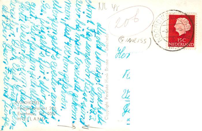 old postcard Enschede NL Parkhotel postalisch gelaufen Erhaltung siehe scans [WerneD78]