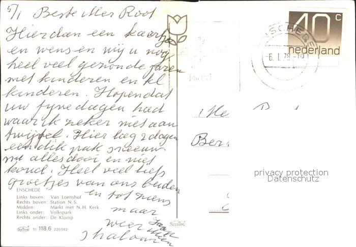 old postcard Enschede Van Loenshof Station Nummer 5 Volkspark postalisch gelaufen Erhaltung siehe scans