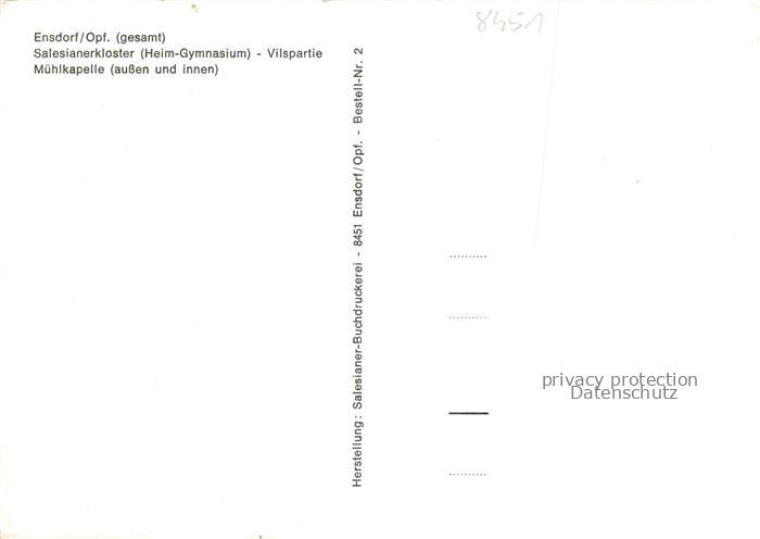 74049419 Ensdorf Oberpfalz Stadtpanorama Salesianerkloster Vilspartie Muehlkapelle postalisch nicht gelaufen Erhaltung siehe scans [FriedD77] KatCode: 11110009371120