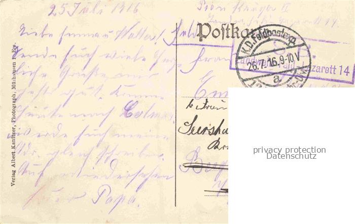 14104353 carte postale Ensisheim 68 Haut-Rhin Rathaus Lazarett-Stempel postalisch gelaufen Feldpostexpedition (Stempel) Erhaltung siehe scans [FriedD77] KatCode: 11170068368082