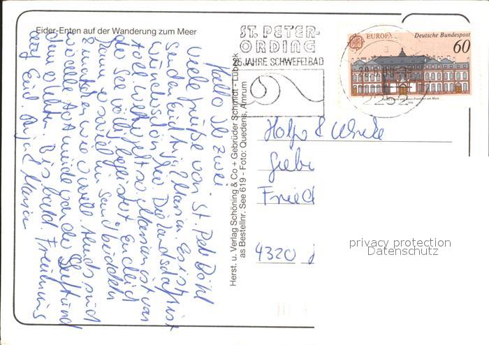 alte Postkarte Enten Eider-Enten Wanderung zum Meer postalisch gelaufen Erhaltung siehe scans