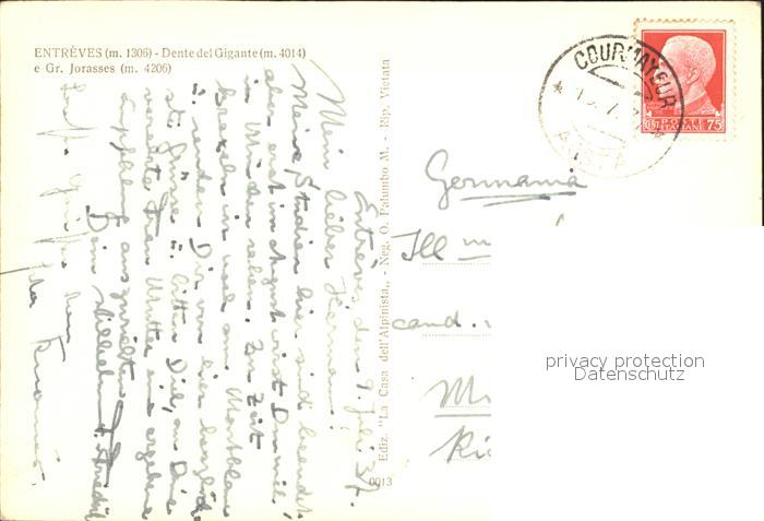 old postcard Entreves Dente del Gigante postalisch gelaufen Erhaltung siehe scans