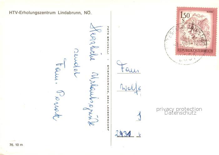 73285233 alte Postkarte Enzesfeld-Lindabrunn Erholungszentrum Lidnabrunn postalisch gelaufen Erhaltung siehe scans [NatalD47] KatCode: 11390122030608