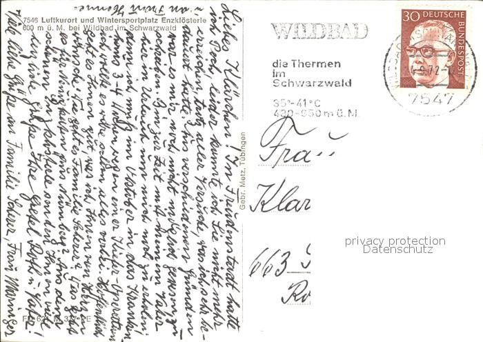 72106771 alte Postkarte Enzkloesterle postalisch gelaufen Erhaltung siehe scans KatCode: 11110008235025