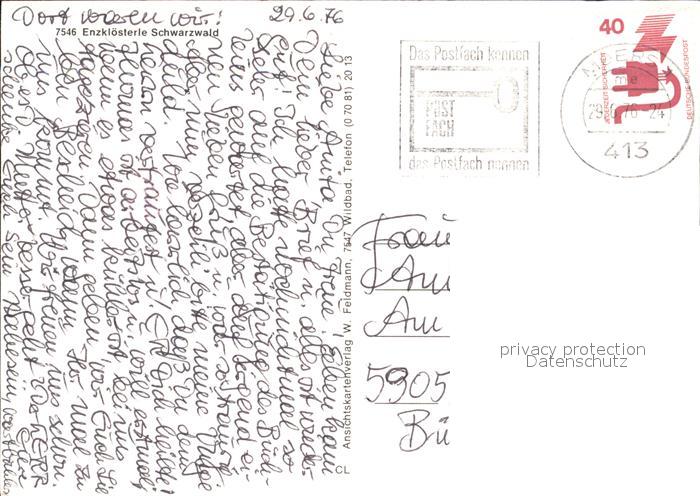 72505859 alte Postkarte Enzkloesterle postalisch gelaufen Erhaltung siehe scans KatCode: 11110008235025