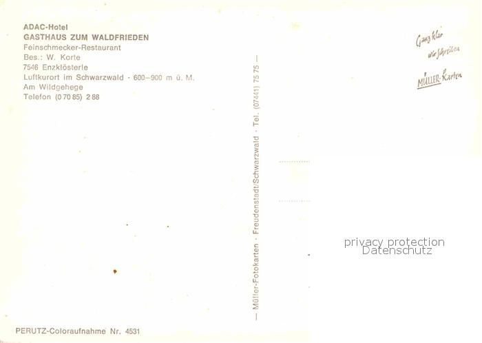 72682361 Enzkloesterle ADAC Hotel Gasthaus zum Waldfrieden Restaurant postalisch nicht gelaufen Erhaltung siehe scans [FriedD77] KatCode: 11110008235025