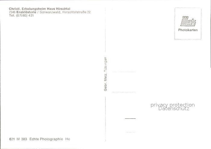 41775516 Enzkloesterle Christl. Erholungsheim Haus Hirschtal postalisch nicht gelaufen Erhaltung siehe scans KatCode: 11110008235025