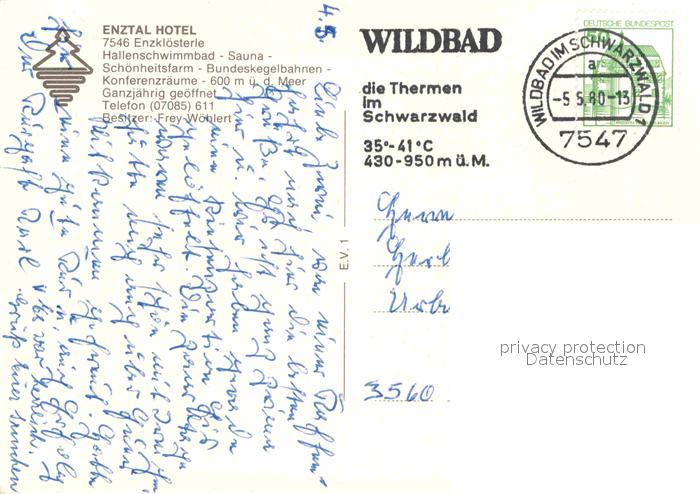 72876925 alte Postkarte Enzkloesterle Enztal Hotel postalisch gelaufen Erhaltung siehe scans [AndreD76] KatCode: 11110008235025
