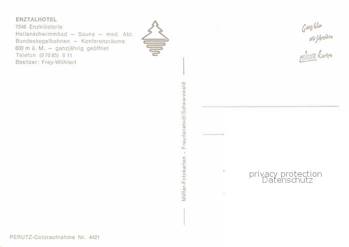 72848253 Enzkloesterle Enztalhotel postalisch nicht gelaufen Erhaltung siehe scans [KathaD81] KatCode: 11110008235025