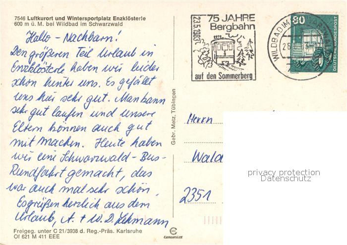 73689628 alte Postkarte Enzkloesterle Fliegeraufnahme postalisch gelaufen Erhaltung siehe scans [WerneD78] KatCode: 11110008235025