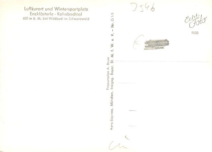 73886620 alte Postkarte Enzkloesterle Fliegeraufnahme Rohnbachtal postalisch gelaufen Erhaltung siehe scans [FriedD77] KatCode: 11110008235025