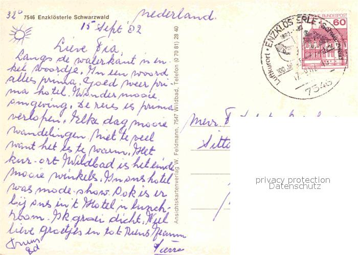 72892935 alte Postkarte Enzkloesterle Fontaene postalisch gelaufen Erhaltung siehe scans [WerneD78] KatCode: 11110008235025