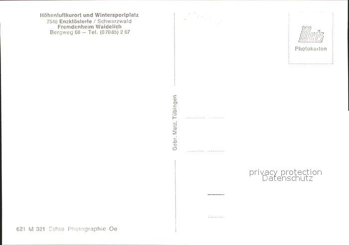 41775505 Enzkloesterle Fremdenheim Waidelich postalisch nicht gelaufen Erhaltung siehe scans KatCode: 11110008235025