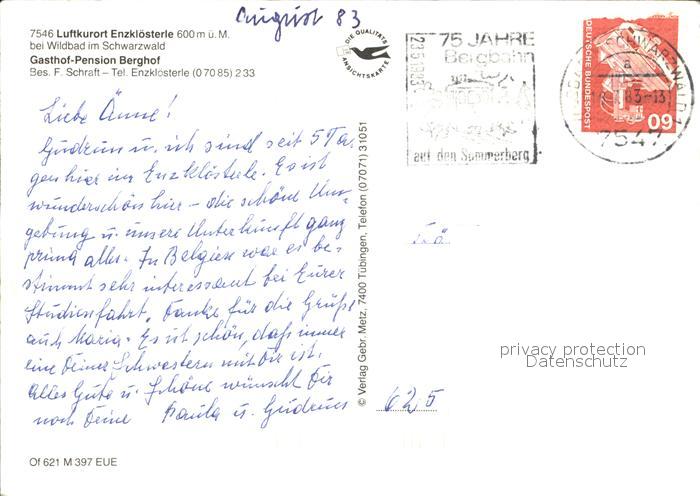 72466916 alte Postkarte Enzkloesterle Gasthof Pension Berghof postalisch gelaufen Erhaltung siehe scans KatCode: 11110008235025