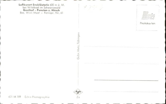 40762755 Enzkloesterle Gasthof Pension Hirsch postalisch nicht gelaufen Alte Ansichtskarte Postkarte Katcode 11110008235025