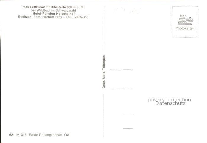 41775554 Enzkloesterle Hotel-Pension Hetschelhof postalisch nicht gelaufen Erhaltung siehe scans KatCode: 11110008235025