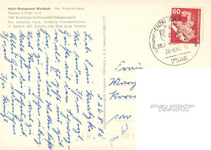 73544718 alte Postkarte Enzkloesterle Hotel Restaurant Waldeck postalisch gelaufen Erhaltung siehe scans [WerneD78] KatCode: 11110008235025