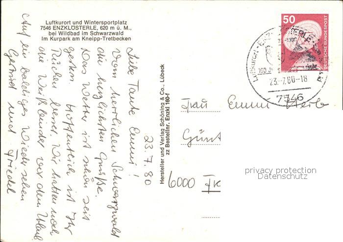 72483600 alte Postkarte Enzkloesterle Kurpark Kneipp Tretbecken Kirche postalisch gelaufen Erhaltung siehe scans KatCode: 11110008235025