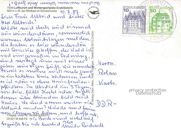 74039768 alte Postkarte Enzkloesterle Panorama Luftkurort im Schwarzwald postalisch gelaufen Fliegeraufnahme Erhaltung siehe scans [FriedD77] KatCode: 11110008235025