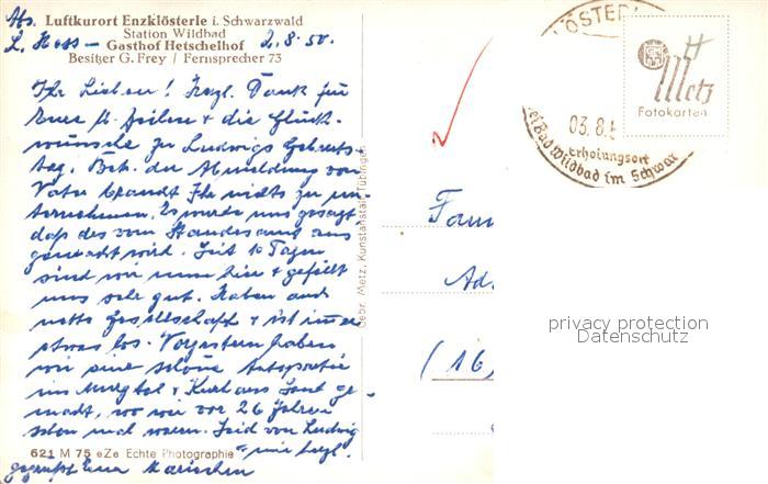 73246410 alte Postkarte Enzkloesterle Panorama Luftkurort im Schwarzwald postalisch gelaufen Erhaltung siehe scans [FriedD77] KatCode: 11110008235025