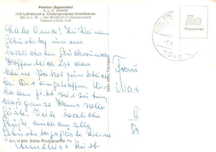 73882871 alte Postkarte Enzkloesterle Pension Jaegerwinkel postalisch gelaufen Erhaltung siehe scans [WerneD78] KatCode: 11110008235025