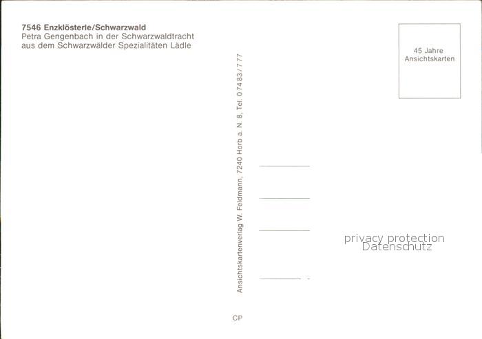 72238371 Enzkloesterle Petra Gengenbach Schwarzwaldtracht postalisch nicht gelaufen Erhaltung siehe scans KatCode: 11110008235025