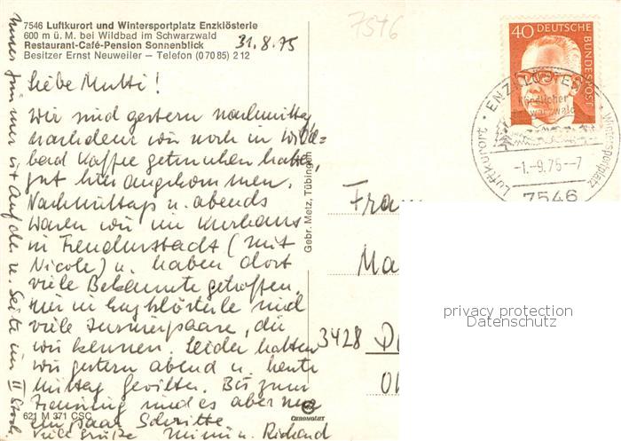 73751908 alte Postkarte Enzkloesterle Restaurant Cafe Pension Sonnenblick postalisch gelaufen Erhaltung siehe scans [WerneD78] KatCode: 11110008235025