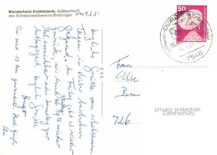 72814589 alte Postkarte Enzkloesterle Wanderheim des Schwarzwaldvereins Broetzingen postalisch gelaufen Erhaltung siehe scans [WerneD78] KatCode: 11110008235025