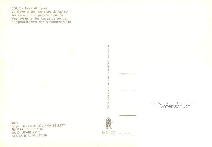 Eolie Cave di pomice Bimssteinbruecke Fliegeraufnahme postalisch nicht gelaufen Erhaltung siehe scans [FriedD77]