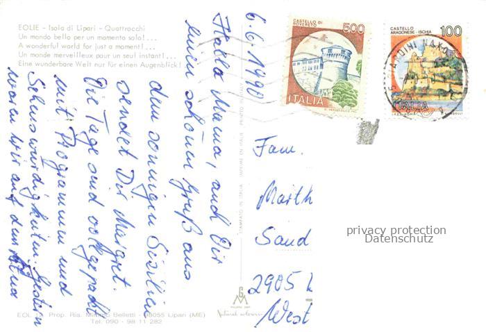 74015078 old postcard Eolie Isole Italia Panorama Isola di Lipari postalisch gelaufen Erhaltung siehe scans [FriedD77] KatCode: 11240