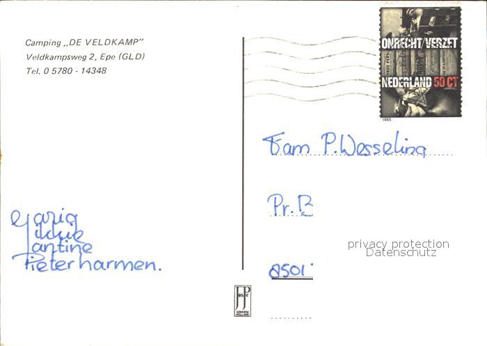 old postcard Epe Gelderland Camping De Veldkamp Swimming Pool Ziegen postalisch gelaufen Erhaltung siehe scans