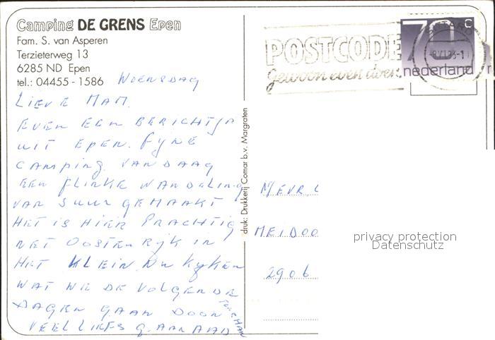 old postcard Epen Camping De Grens postalisch gelaufen Erhaltung siehe scans