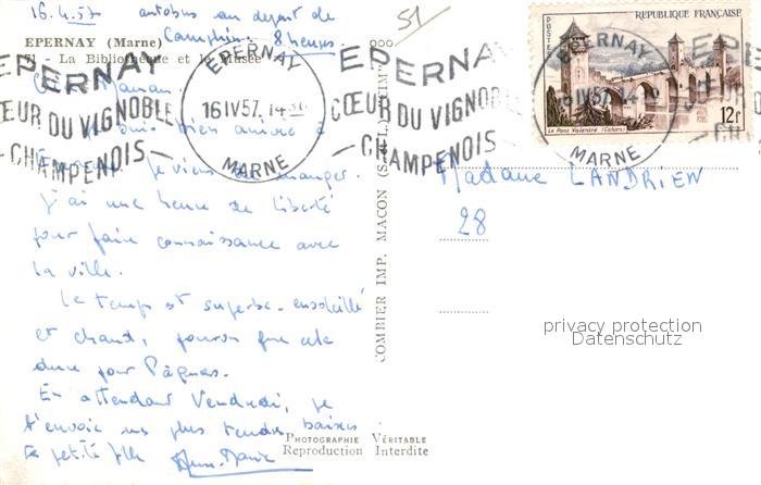 12925350 carte postale Epernay 51 La Bibliotheque et le Musee postalisch gelaufen Erhaltung siehe scans [FriedD77] KatCode: 11170051251230