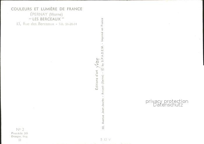 12310303 Epernay 51 Les Berceaux Hotel Restaurant postalisch nicht gelaufen Erhaltung siehe scans KatCode: 11170051251230