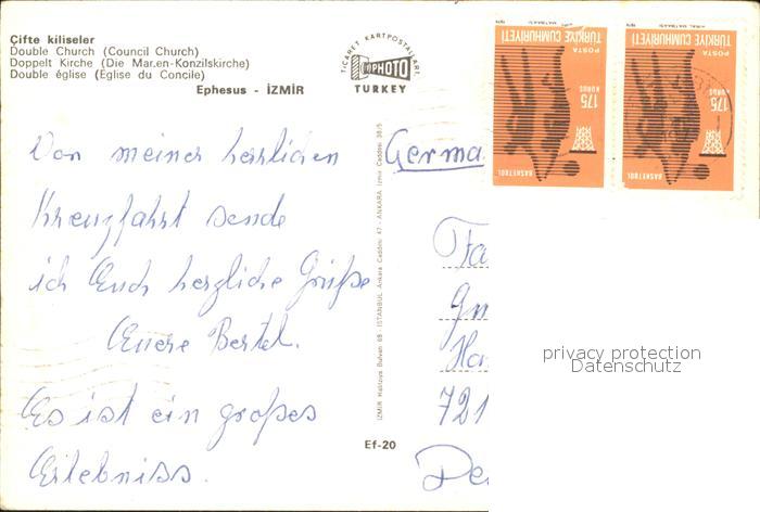 old postcard Ephesus Doppelt Kirche postalisch gelaufen Erhaltung siehe scans