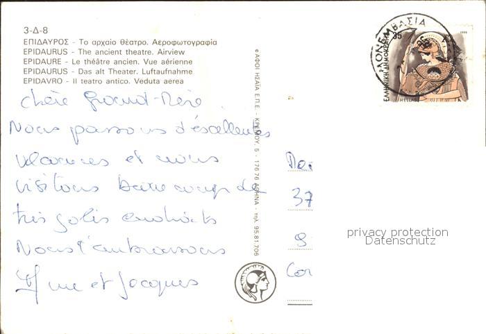 old postcard Epidauros Fliegeraufnahme Theater postalisch gelaufen