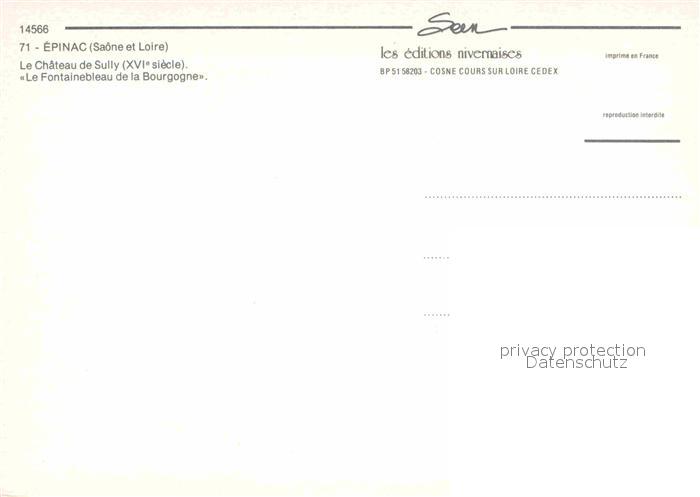12769097 Epinac Chateau de Sully XVI siecle Wasserschloss postalisch nicht gelaufen Erhaltung siehe scans [FriedD77] KatCode: 11170071171190