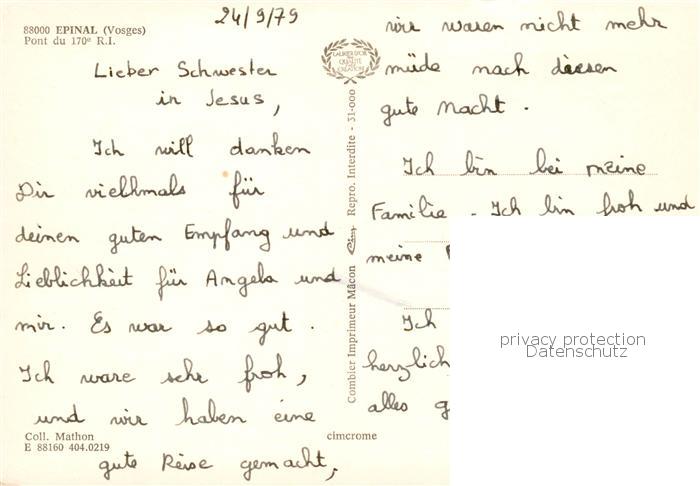 13835321 Epinal 88 Vosges Pont du 170e R.I. postalisch nicht gelaufen Erhaltung siehe scans [FriedD77] Frie Katcode 11170088188160